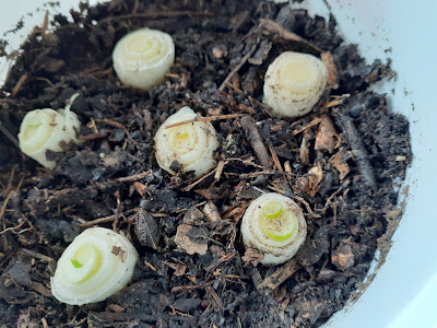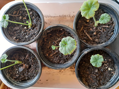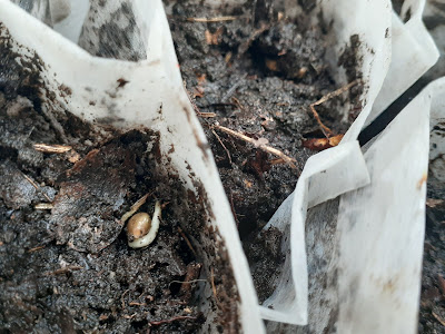 Some of the lupines started growing their roots. The zinnias and lettuces are popping up too.