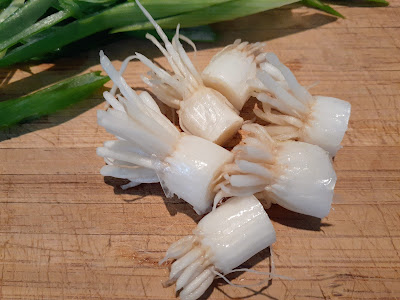 I often use spring onions for cooking. Spring onions are very strong and you can regrow them easily at home. In fact, l have regrown them before.