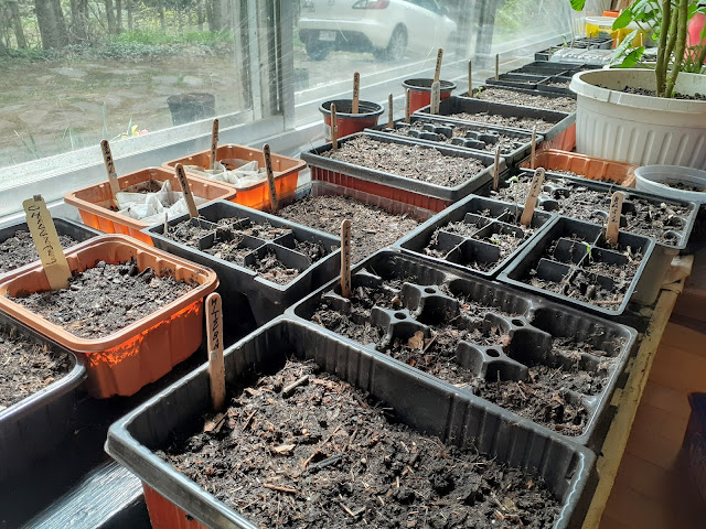 >>> Cucumbers germinating in egg cartons! Potting up has been done!