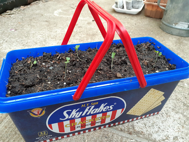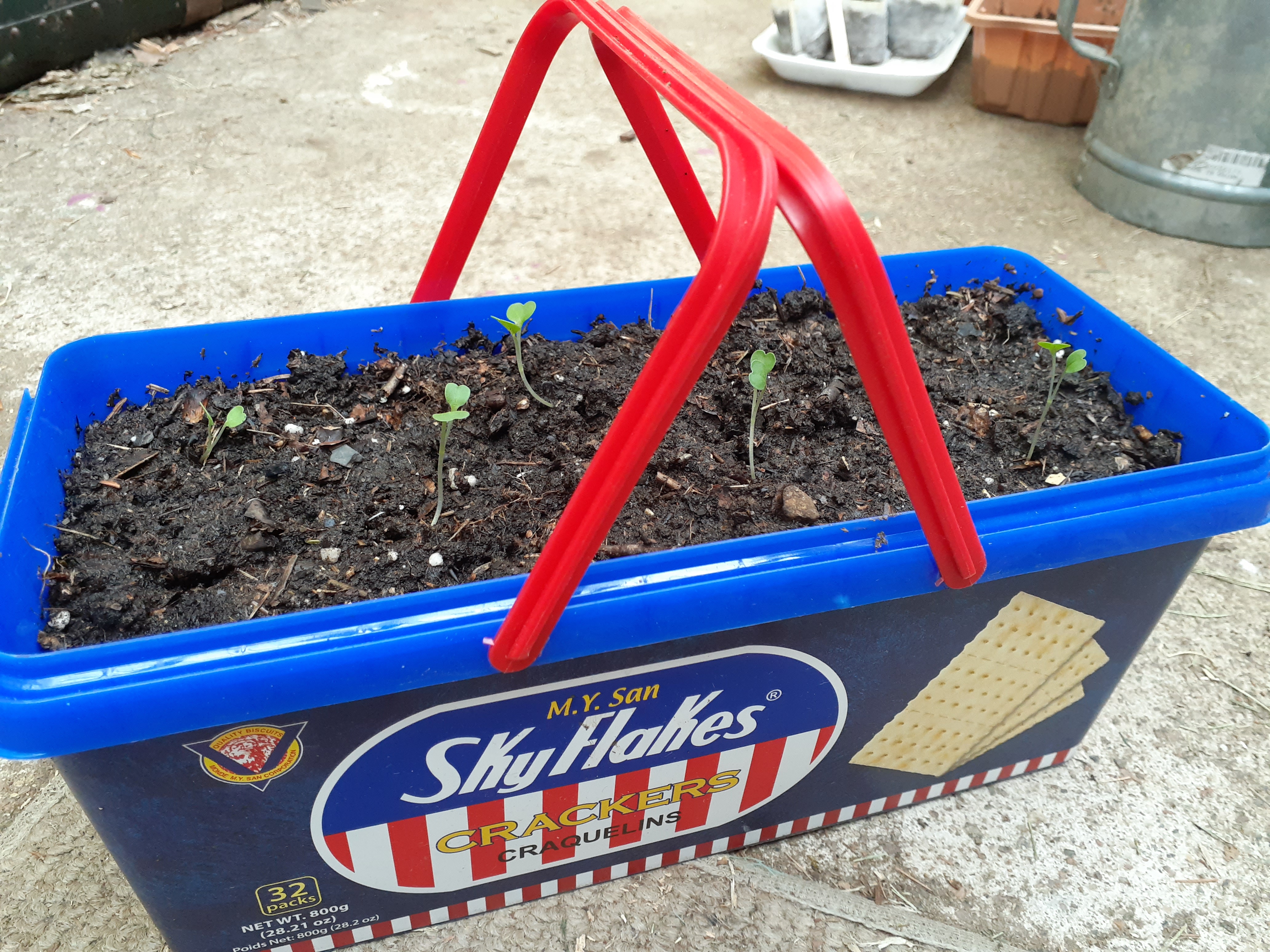 The photo below shows a box of Philippine crackers that I planted arugula in.