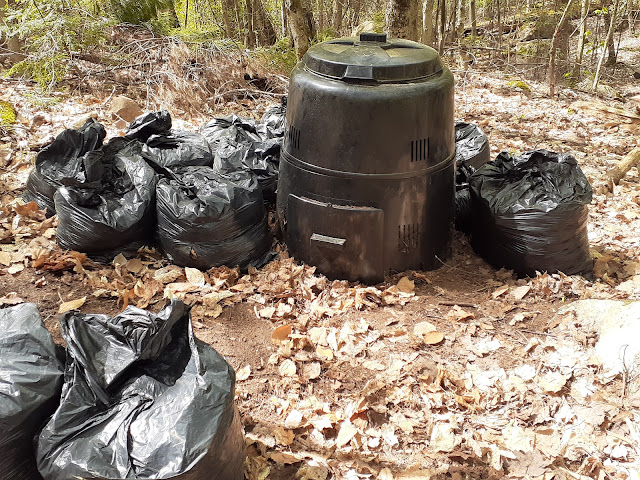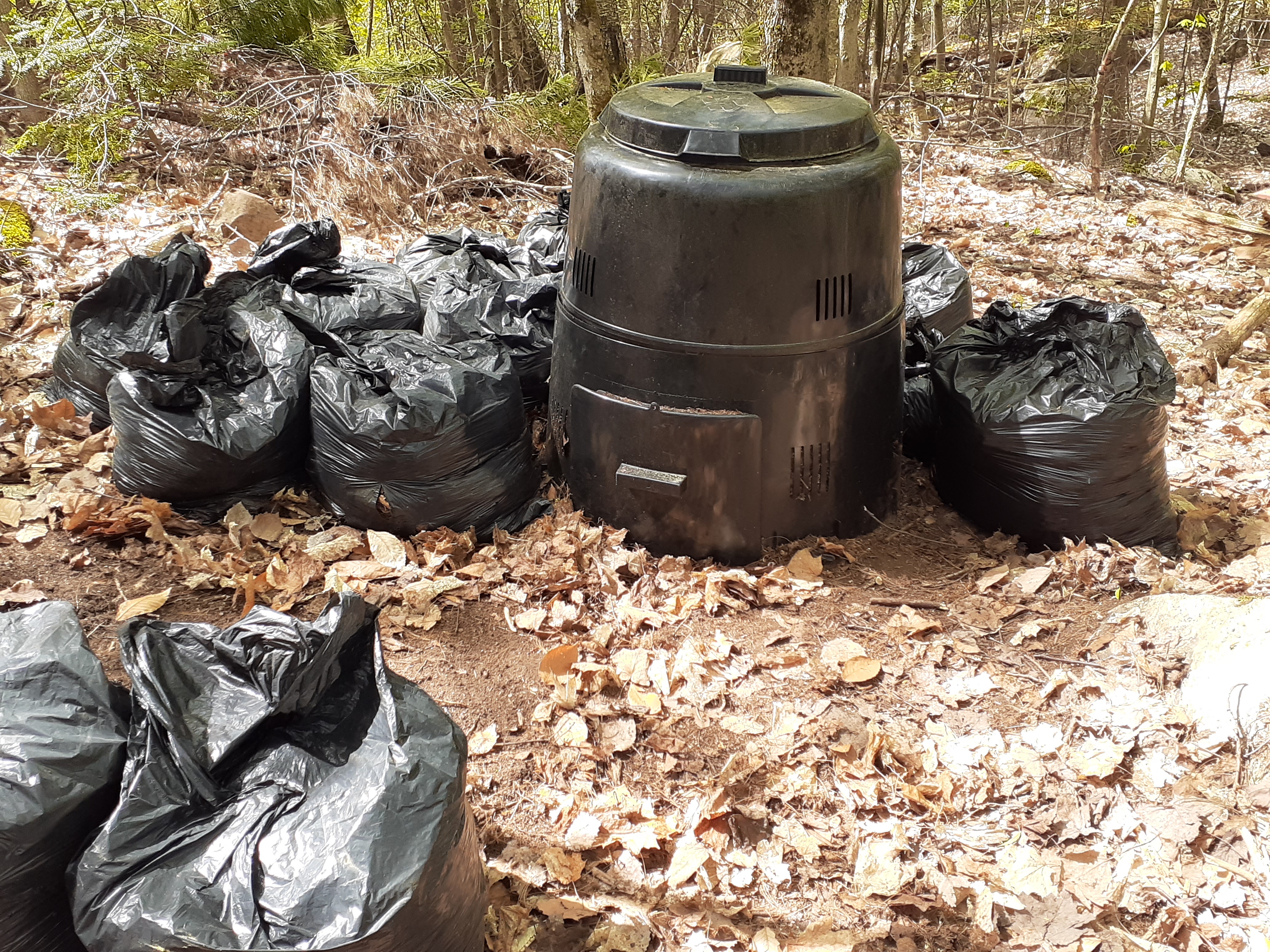 It’s a bit messy as it’s only temporary. We reused a rubbish bag full of holes from the leaf composting I mentioned earlier.