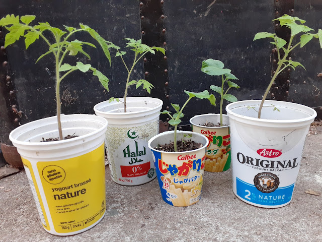 You need some containers to plant seeds to grow seedlings. The plastic pots are available in the shop, but they are not as cheap as they look and you often need many of them. You don’t have to buy them, there are plenty of alternatives around you.