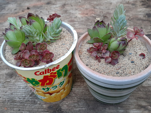 We often use yoghurt pots to grow seedlings of tomatoes and courgette. For cucumbers, the yoghurt pots might be too big. The paper coffee cups may be better for them. I put cucumber sprouts into Japanese snack cups this year (see picture at the beginning). You can also reuse cans or rice bags. No matter what kind of containers they are, you need to make holes in the bottom so that your plant won’t be sitting in the water.