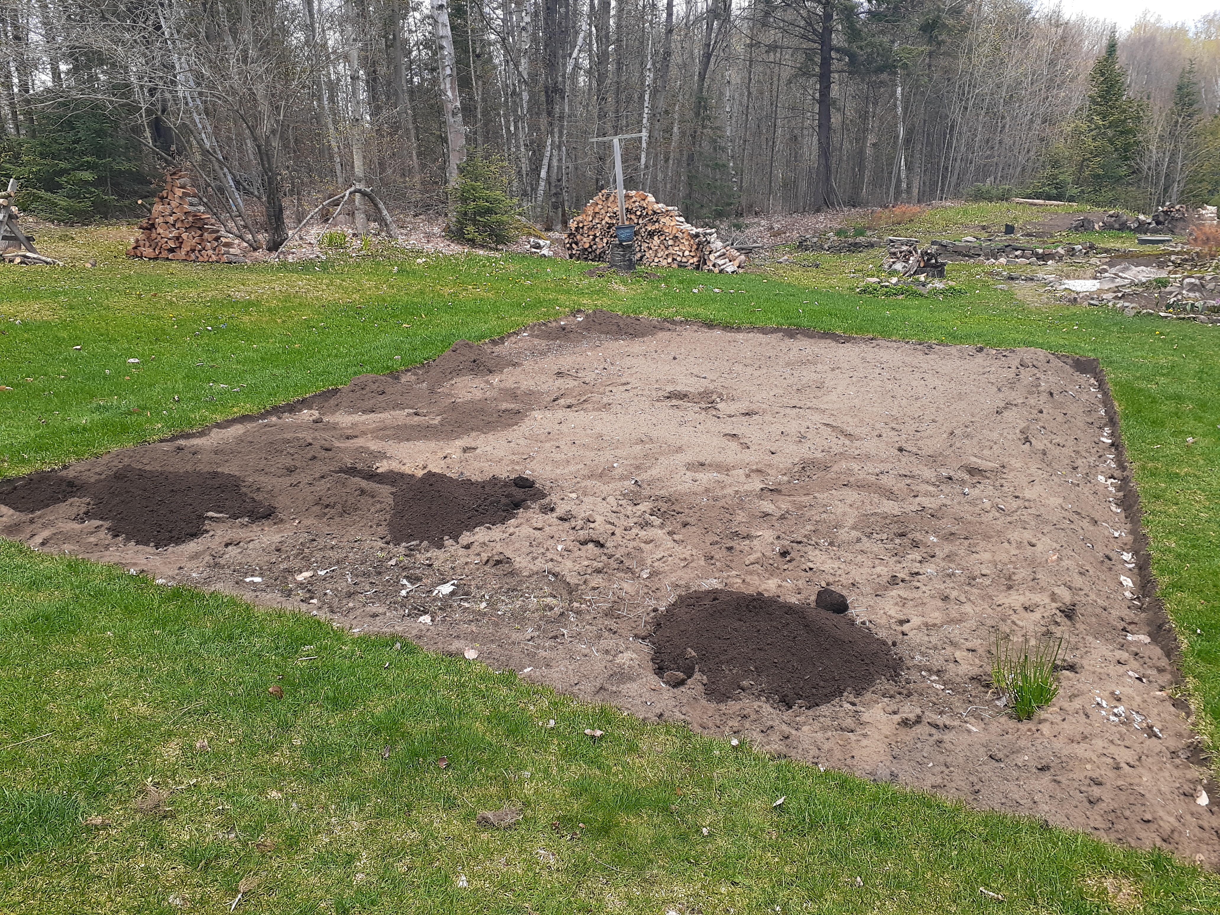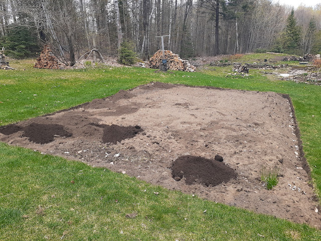 The compost that we had ordered was delivered the other day, but we still had to move it to the main vegetable garden. There is a gentle uphill slope from the car park, where the soil is temporarily stored, to the main garden. It was quite hard work. However, we managed to finish moving the compost by yesterday evening. The main vegetable garden was also ready!